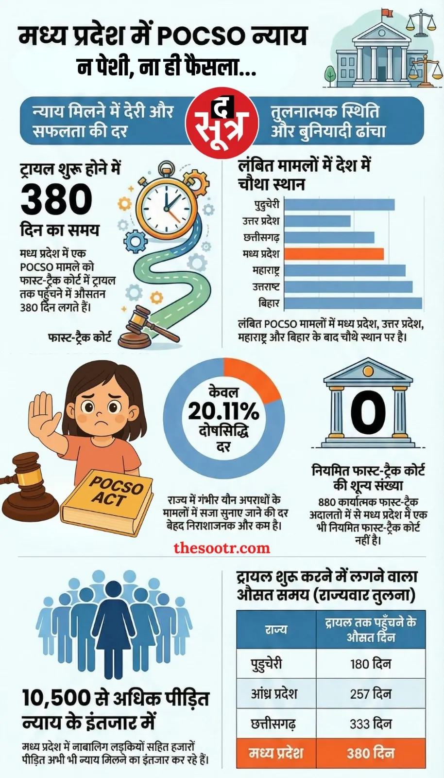 - मध्य प्रदेश में POCSO मामलों को ट्रायल के लिए औसतन 380 दिन लगते हैं।