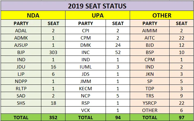 2019 में सीटों की तस्वीर कुछ इस तरह थी