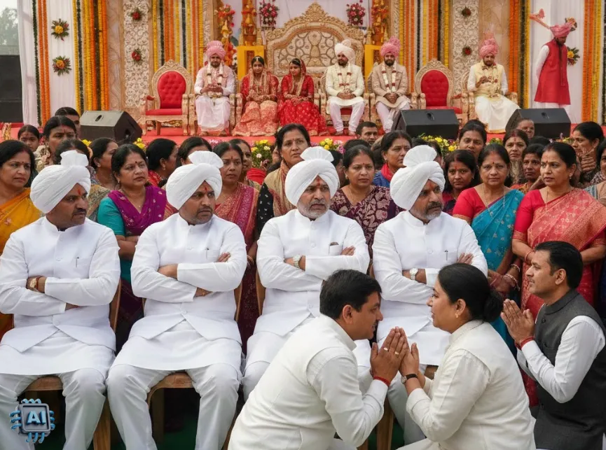वहीं, विवाह समारोह में उस समय हलचल मच गई जब नेताजी फूफाजी के रोल में आ गए। बीजेपी के कुछ पदाधिकारी वैवाहिक कार्यक्रम में नाराज फूफा की तर्ज पर नाराज हो गए, और मंच में जाने के बजाए नीचे लगे दर्शक दीर्घा की कुर्सियों में बैठकर विरोध जताने लगे। नेताजी की नाराजगी का कारण यह था कि आमंत्रण पत्र में उनका नाम गायब था। जैसे तैसे अधिकारियों ने मान-मनौव्वल की तब जाकर फूफाजी का गुस्सा ठंडा हुआ।