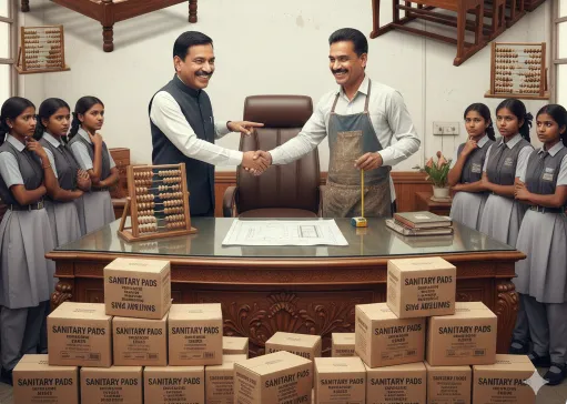 दूसरी ओर पढ़ने वाली लड़कियों की सेहत की सरकार को बहुत चिंता है। इसी चिंता से ग्रसित सरकार ने टेबल कुर्सी बनाने वाली कंपनी को उनकी सेहत से जुड़ी जरूरत की सप्लाई का ठेका दे दिया। अब स्वास्थ्य संबंधी चीजों की सप्लाई फर्नीचर बनाने वाली कंपनी करेगी तो क्या होगा।