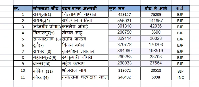 Chhattisgarh Lok Sabha Election Result 2024