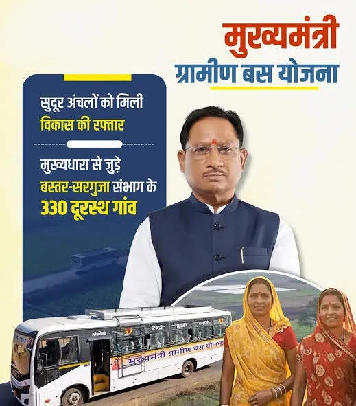 छत्तीसगढ़ के कई ग्रामीण इलाकों में लोगों को पहले जिला मुख्यालय, तहसील या शहर तक पहुंचने के लिए लंबा इंतजार करना पड़ता था। निजी वाहन या बाइक ही एकमात्र सहारा थे। कई बार लोगों को कई किलोमीटर पैदल चलना पड़ता था। मुख्यमंत्री ग्रामीण बस योजना का उद्देश्य ऐसे ही क्षेत्रों को परिवहन सुविधा से जोड़ना है। इस योजना के तहत बसें गांवों को जनपद मुख्यालय, तहसील मुख्यालय, शहर और जिला मुख्यालय से जोड़ रही हैं।