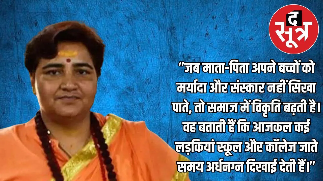 प्रज्ञा सिंह ठाकुर ने कहा कि जब माता-पिता अपने बच्चों को मर्यादा और संस्कार नहीं सिखा पाते, तो समाज में विकृति बढ़ती है। वह बताती हैं कि आजकल कई लड़कियां स्कूल और कॉलेज जाते समय अर्धनग्न दिखाई देती हैं। उनका मानना है कि यह समाज में संस्कारों की कमी का परिणाम है। प्रज्ञा ने यह भी कहा कि माता-पिता को बेटियों के साथ-साथ बेटों को भी मर्यादा और अनुशासन सिखाने की जरूरत है।
