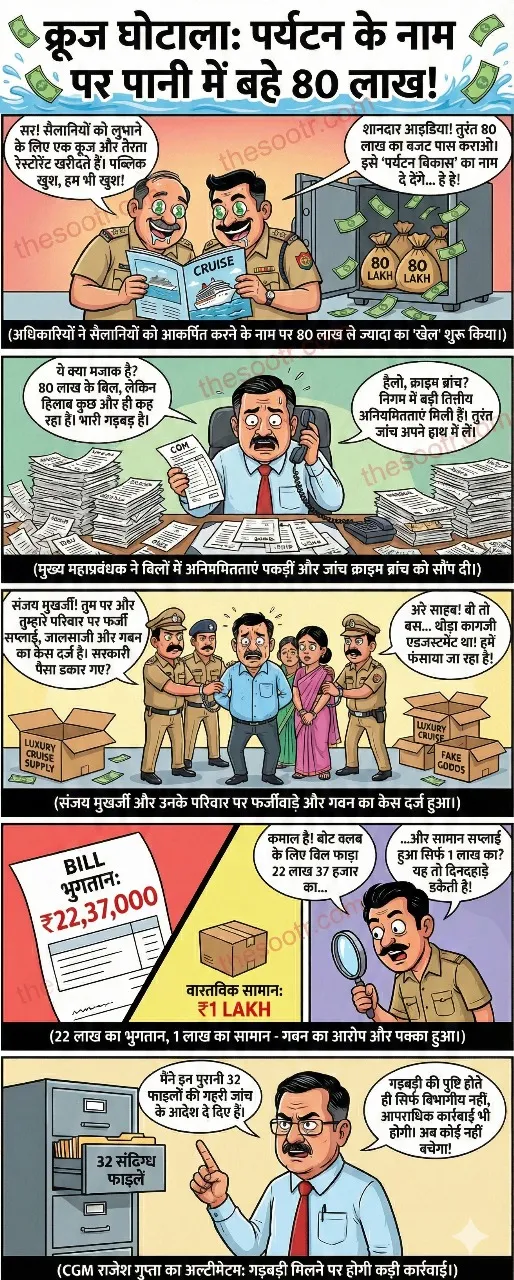बीते दिनों निगम के मुख्य महाप्रबंधक राजेश गुप्ता ने क्रूज और रेस्टोरेंट का निरीक्षण किया था। इस दौरान उन्हें सामान और बिल में अनियमितताएं मिली थीं। बारीकी से पड़ताल करने पर गुप्ता को रेस्टोरेंट को माल सप्लाई करने वाली फर्म की भूमिका पर भी संदेह हुआ था।