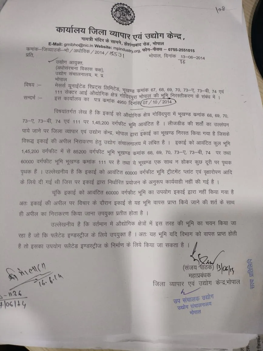 BHOPAL. गोविंदपुरा इंडस्ट्रियल एरिया में भगोड़े लिकर किंग विजय माल्या से जुड़ी कंपनी को आवंटित साढ़े तीन एकड़ जमीन बिकवाने में नियमों की जमकर धज्जियां उड़ाई गई। इस मामले में न सिर्फ ​लीज नियमों को अनदेखा किया गया,बल्कि पर्यावरण से जुड़े अहम मामले भी नजर अंदाज हुए।