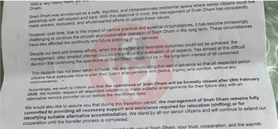उन्होंने कहा कि हम महिलाएं 70 से 90 साल की हैं और कई दिव्यांग भी हैं। कंपनी ने हमें एक महीने में स्नेहधाम खाली करने का नोटिस दिया है। अब हम कहां जाएं? वे कह रहे हैं कि इस संस्थान का उपयोग अब किसी और काम के लिए किया जाएगा। कृपया हमारी मदद कीजिए।