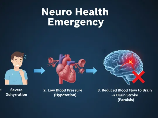 रामगुलाम राजधान , वरिष्ठ मनोरोग विशेषज्ञ ( भूतपूर्व एमजीएम डीन , एचओडी मनोरोग विभाग ) बताते हैं कि लंबे समय तक डिहाइड्रेशन से ब्लड प्रेशर गिरता है। बुजुर्गों में इससे दिमाग की नसों तक रक्त नहीं पहुंचता, जिससे लकवे का खतरा बढ़ता है। संक्रमण इस प्रक्रिया को तेज कर देता है।