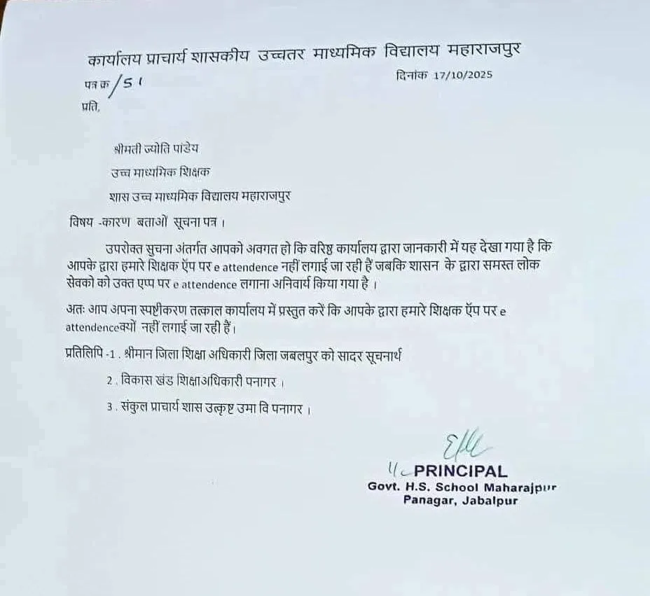 JABALPUR. सरकारी स्कूलों में शिक्षकों की उपस्थिति दर्ज करने के लिए शुरू किए गए ‘हमारा शिक्षक’ ई-अटेंडेंस ऐप को लेकर जबलपुर में विवाद गहराता जा रहा है। एक शिक्षिका द्वारा निजी मोबाइल में ऐप इंस्टॉल करने से इनकार करने के बाद अब जिला शिक्षा अधिकारी (DEO) का भी पक्ष सामने आया है।
