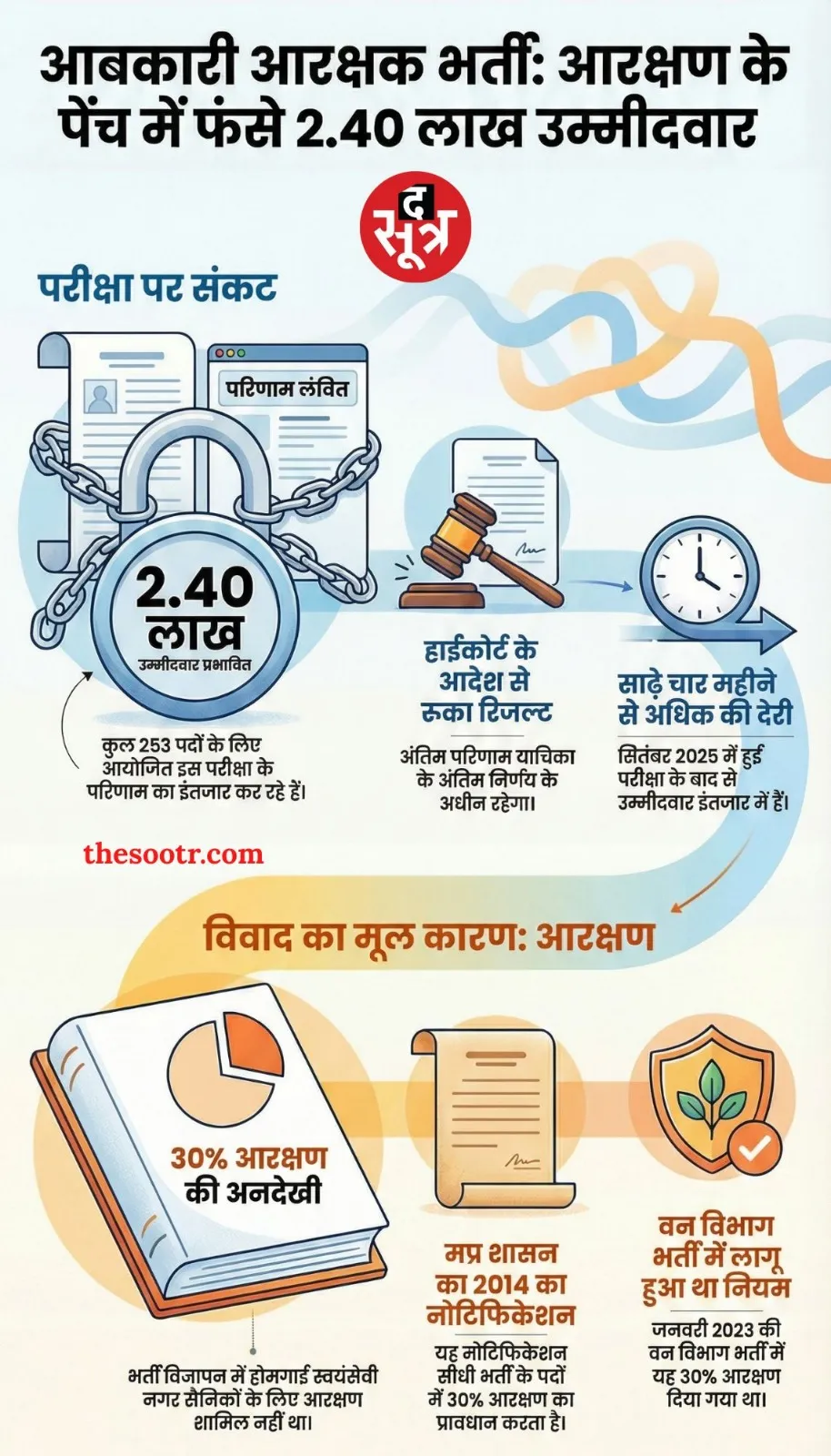 INDORE. कर्मचारी चयन मंडल (ईएसबी) भोपाल के जरिए ली गई आबकारी आरक्षक परीक्षा के रिजल्ट का इंतजार हो रहा है। कुल 253 पदों के लिए यह परीक्षा सितंबर 2025 में हुई थी। इसमें 2.40 लाख फार्म भरे गए थे। वहीं, रिजल्ट के पहले ही इसमें आरक्षण का पेंच फंस गया है।