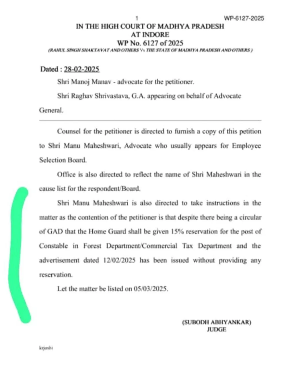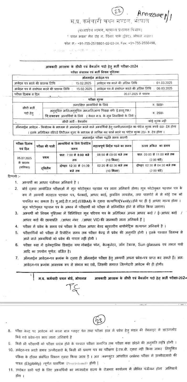 आबकारी आरक्षक के कुल 253 पदों के लिए फरवरी 2025 में विज्ञापन जारी हुआ था। इसके बाद ही इस पर इंदौर हाईकोर्ट में 8 होमगार्ड स्वयंसेवी नगर सैनिकों के जरिए याचिका दायर कर दी गई थी।