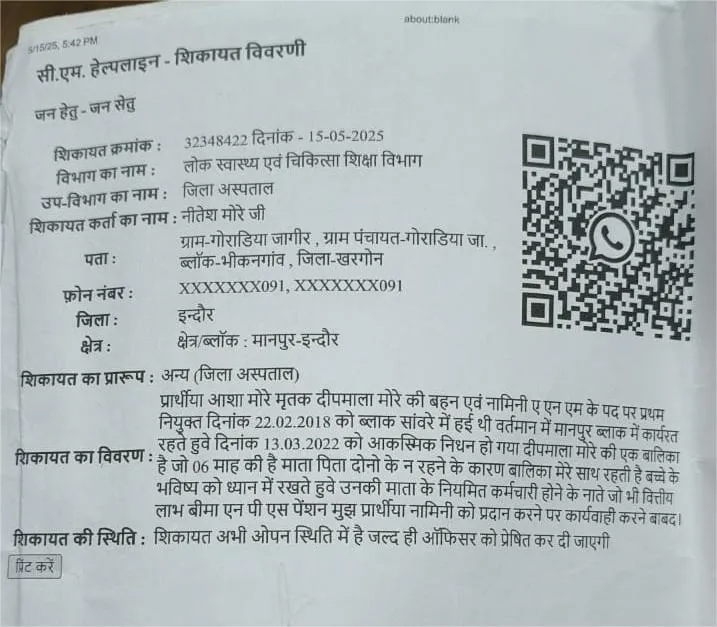 मामा नीतेश मोरे ने बताया कि मार्च 2022 से जून 2022 के बीच प्रोत्साहन राशि के लिए कई आवेदन किए गए थे। महू, मानपुर और इंदौर के स्वास्थ्य कार्यालयों के 50 से अधिक चक्कर लगाए गए थे।