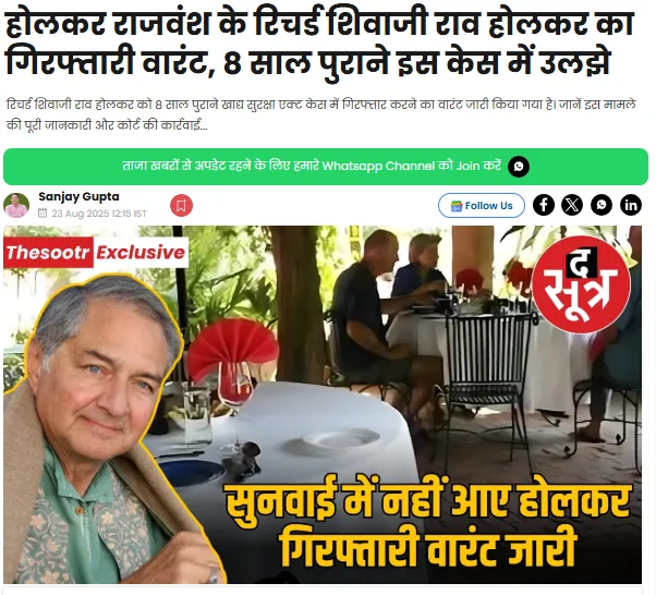 होलकर राजवंश के रिचर्ड शिवाजी राव होलकर का गिरफ्तारी वारंट, 8 साल पुराने इस केस में उलझे