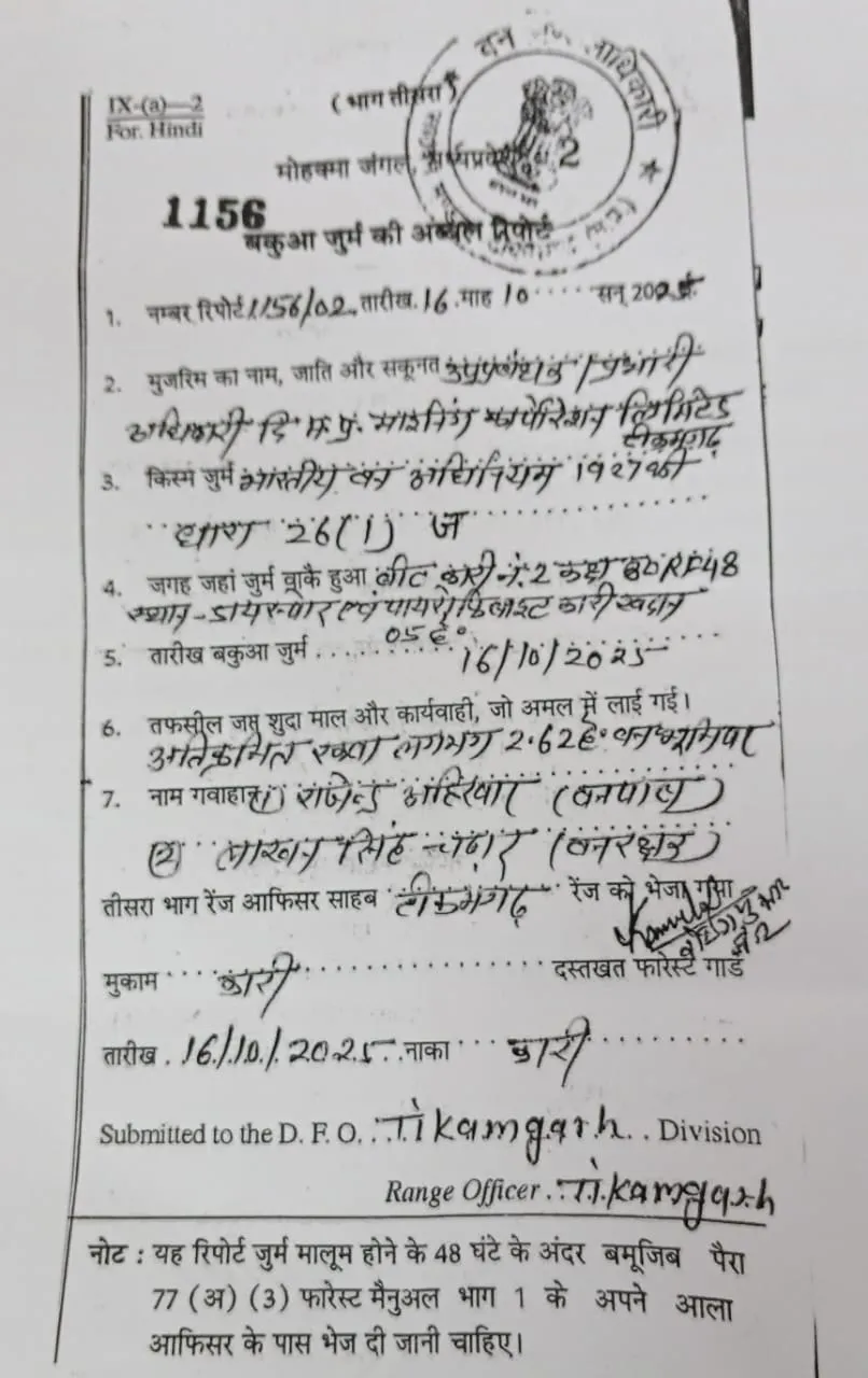 टीकमगढ़ डीएफओ ने कराई एफआईआर