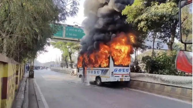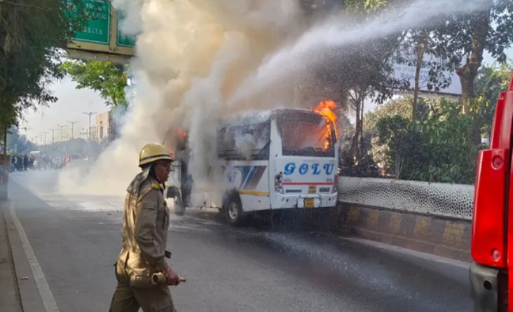 - पुलिस बस में आग लगने की जांच कर रही है।
