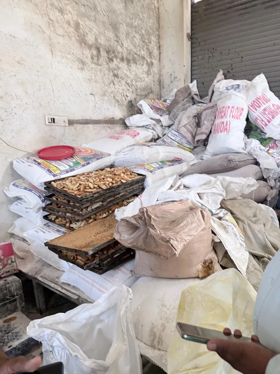 परिसर में गंदगी पाई गई, और रॉ मटेरियल का भंडारण सही तरीके से नहीं किया गया था। यहां कीड़े भी घूमते हुए पाए गए। साथ ही, परिसर में संदिग्ध आर्टिफिशियल स्वीटनर भी रखा हुआ था।