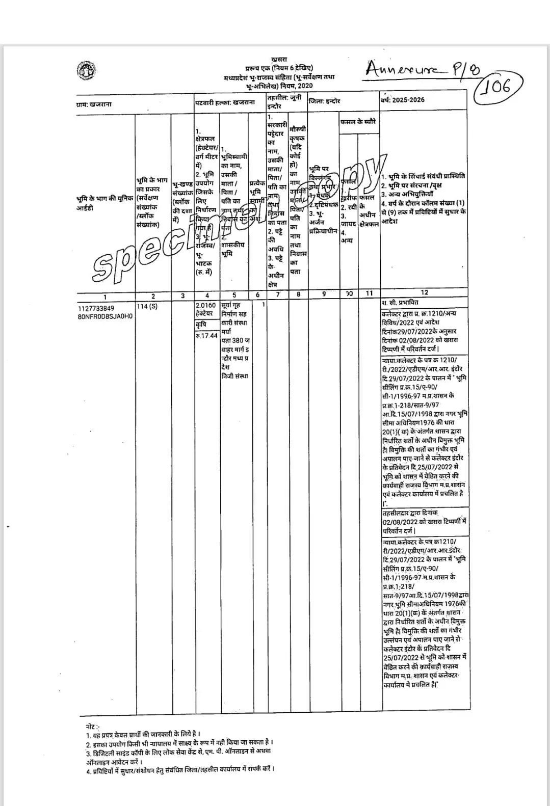 इसमें कहा गया है कि केवल 25 जुलाई 2022 के तत्कालीन कलेक्टर के पत्र के आधार पर जमीन के राजस्व रिकॉर्ड में बदलाव किया गया था। इस संबंध में कोई औपचारिक आदेश शासन या कलेक्टर कोर्ट से हुआ ही नहीं है।