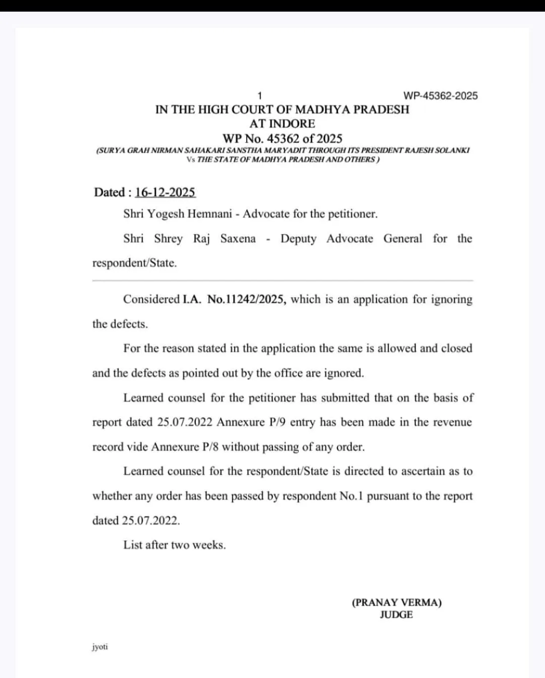 अब हाईकोर्ट जस्टिस प्रणय वर्मा की बेंच ने इस संबंध में एमपी सरकार और इंदौर कलेक्टर से जवाब मांगा है। साथ ही, 25 जुलाई 2022 के पत्र संबंध में औपचारिक आदेश की कॉपी मांगी है।
