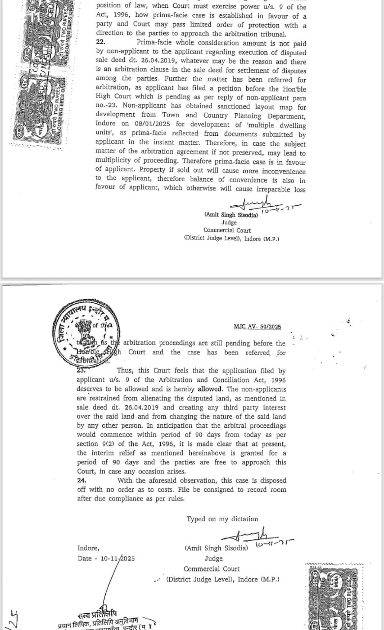 एमपीएम होम्स पार्टनर के इस प्रोजेक्ट के खिलाफ अमरजोत डेवलपर्स के जरिए आपत्ति ली गई थी। इसके पार्टनर में अन्नपूर्णा माहेश्वरी, गिरीश मालपानी, श्रुति मालपानी (पति गिरीश मालपानी) के नाम शामिल हैं। मामला कमर्शियल कोर्ट में आर्बिट्रेशन एंड कोंसीलेशन एक्ट 1996 की धारा 9 के तहत गया था।