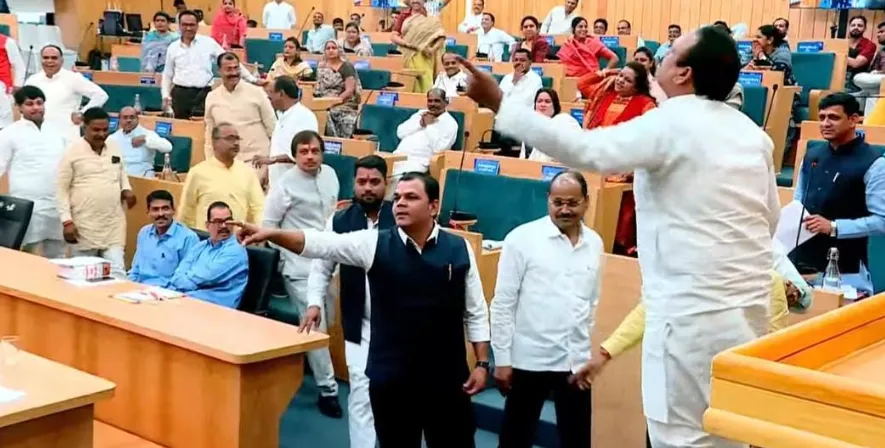 लगातार हंगामे के बीच में कांग्रेस पार्षद राजू भदौरिया और बीजेपी पार्षद योगेश गेंदर के बीच विवाद हो गया। इस दौरान भदौरिया ने हाथ-पांव पर ताल देते हुए कहा कि चाहे जैसे आ जाना, हाथ-पैर से या किसी और से, पूरे दम से जीतकर आया हूं। इस पर गेंदर ने सभापति के पास आकर हंगामा किया और कहा कि भदौरिया माफी मांगे। सभापति ने भी कहा कि भदौरिया अश्लील हरकत के लिए माफी मांगे। इस पर हंगामा हुआ और काफी देर बाद मामला शांत हुआ।