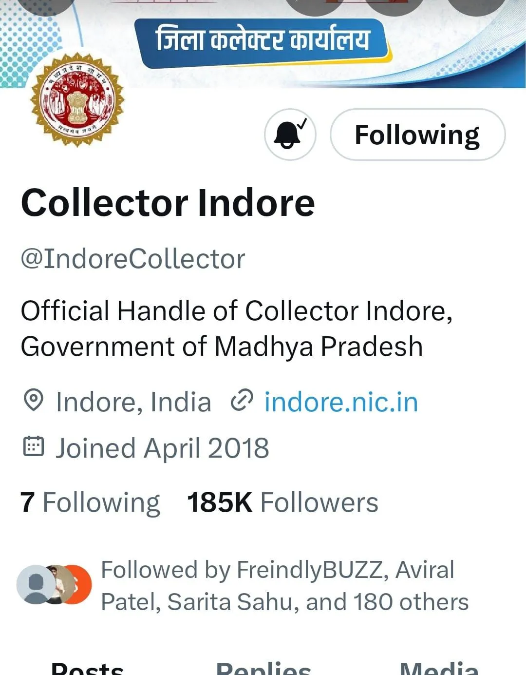 इंदौर कलेक्टर- 185 हजार फॉलोअर