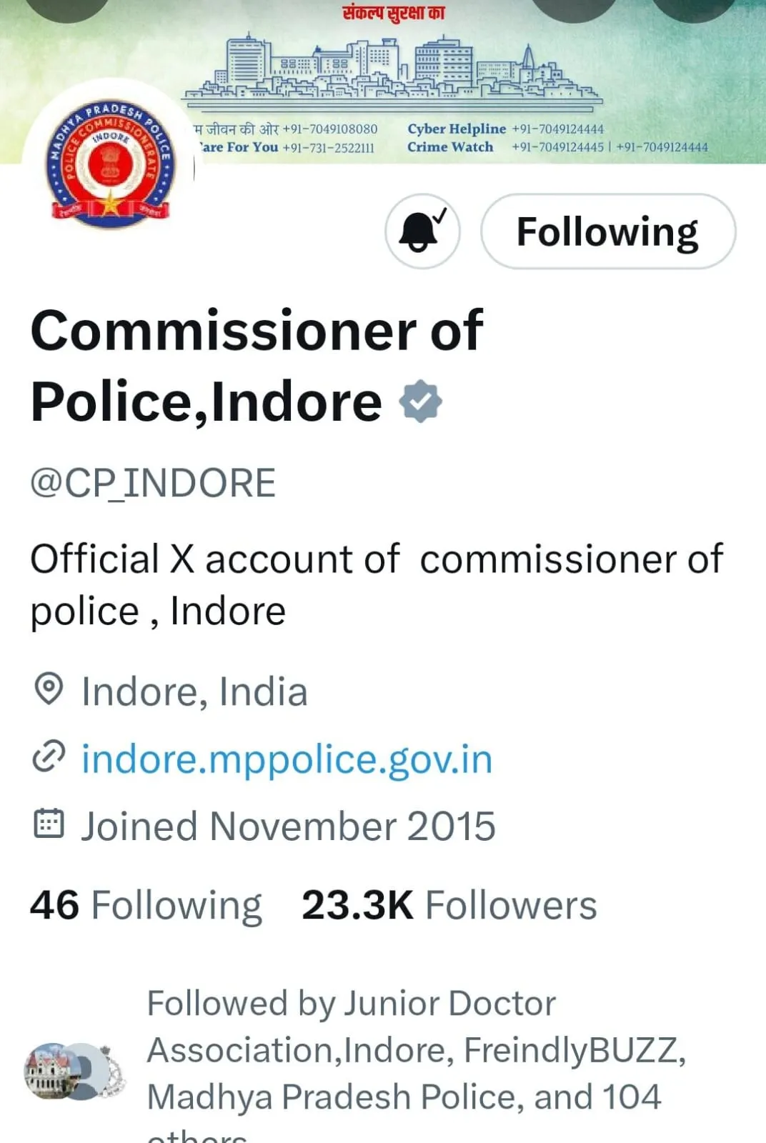 इंदौर पुलिस कमिशनर- 23.3 हजार फॉलोअर