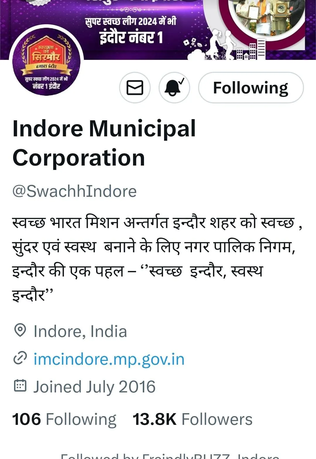 इंदौर नगर निगम- 13.8 हजार फॉलोअर