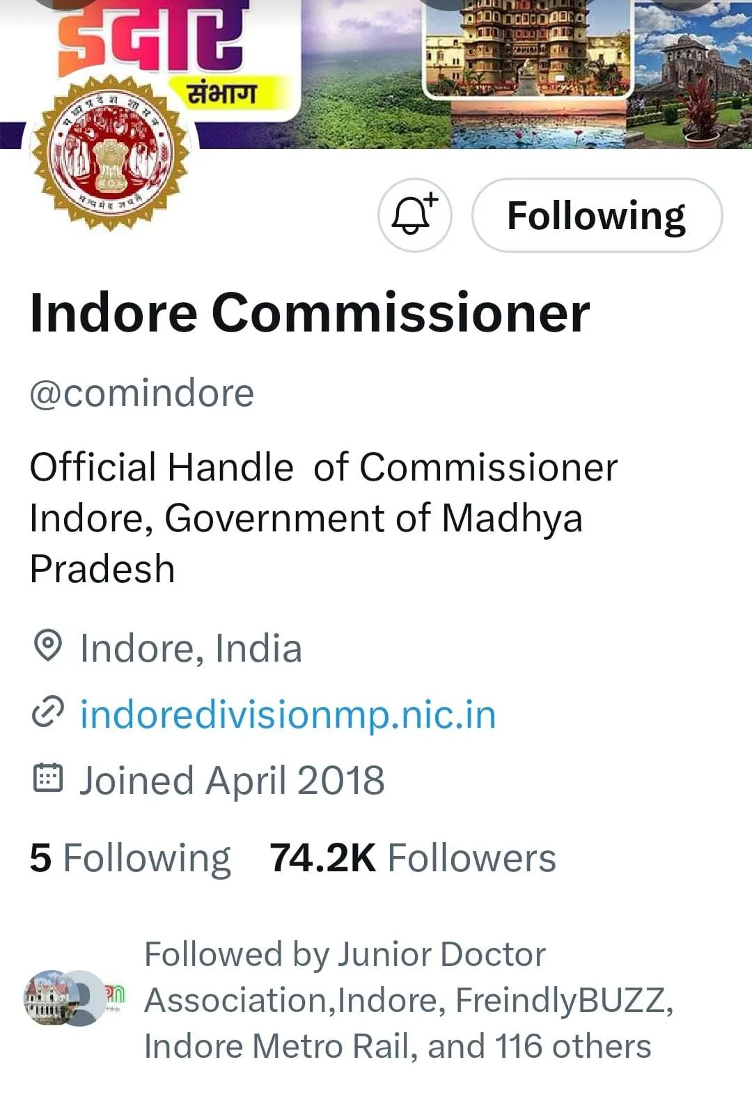 इंदौर संभागायुक्त- 74.2 हजार फॉलोअर