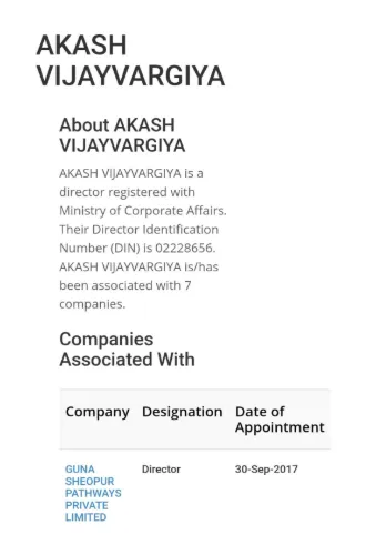 ग्रुप की कंपनी में मंत्री कैलाश के पुत्र आकाश डायरेक्टर