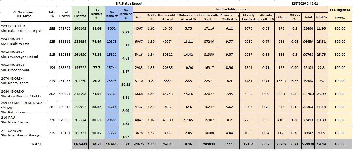 भले ही इंदौर जिला निर्वाचन अधिकारी को 23.08 लाख मतदाताओं के फार्म भरकर मिले हैं। इनमें से 21.45 लाख ही मैपिंग में आए हैं। करीब नौ लाख मतदाता ऐसे हैं जो साल 2003 की SIR सूची में भी मतदाता के तौर पर थे।