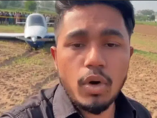 युवक ने खेत में जहाज लैंड करने का फेक वीडियो भी बनाया, जिससे भीड़ जमा हो गई।