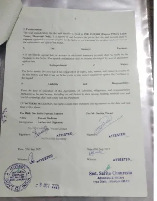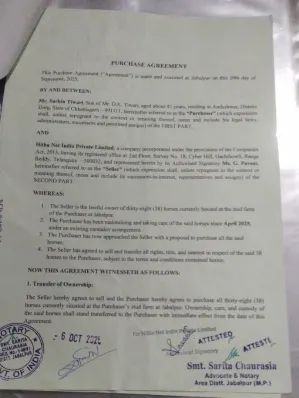 द सूत्र के हाथ ओनरशिप ट्रांसफर के दस्तावेज लगे हैं। इससे ये पता चला कि घोड़ों का देखभाल करने वाले सचिन तिवारी ने 6 अक्टूबर 2025 को अपने नाम पर एक ओनरशिप एग्रीमेंट किया था।