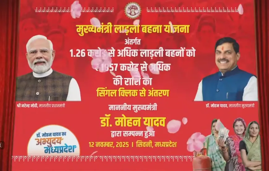 Seoni. मध्यप्रदेश की लाड़ली बहनों का इंजतार अब खत्म हो गया है। प्रदेश सरकार ने आज, 12 नवंबर को 30वीं किस्त की राशि जारी कर दी है। यह राशि सीएम मोहन यादव ने सिवनी जिले से बहनों के खाते में सिंगल क्लिक से जारी की है।