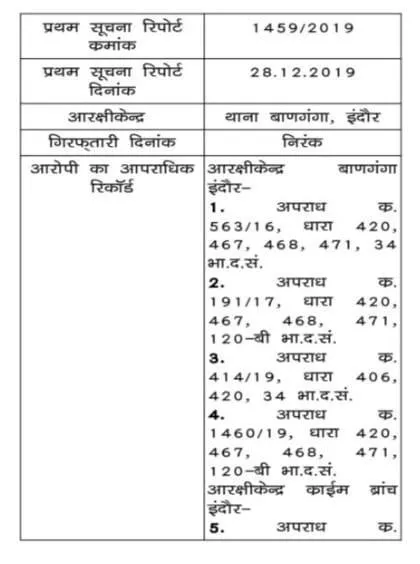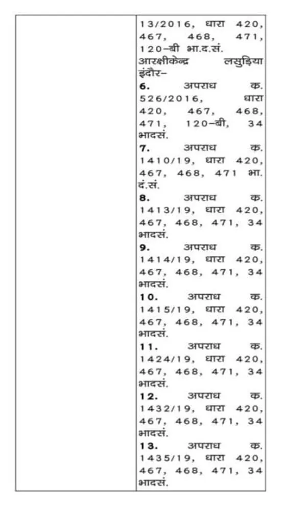 निलेश पर दर्ज मामलों की जानकारी भी पुलिस ने कोर्ट में पेश की थी। इसमें बताया गया कि उस पर आईपीसी की धाराओं 420, 467, 468, 471 और 34 जैसी गंभीर धाराओं में कुल 15 केस दर्ज हैं।