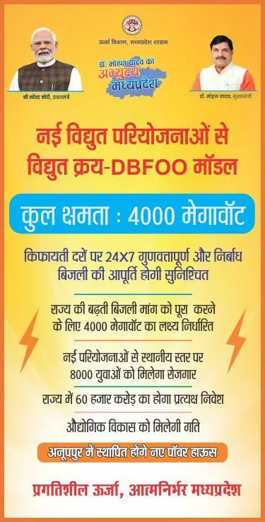 बढ़ती आबादी, उद्योगों और विकास योजनाओं के बीच बिजली की मांग लगातार बढ़ रही है। ऐसे में यह दीर्घकालिक बिजली समझौता मध्यप्रदेश को ऊर्जा के मोर्चे पर आत्मनिर्भर बनाने की दिशा में बड़ा कदम माना जा रहा है।