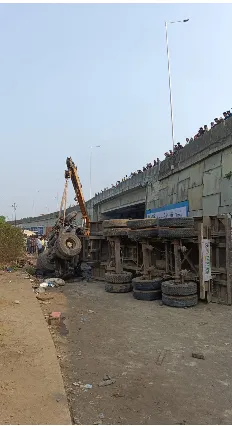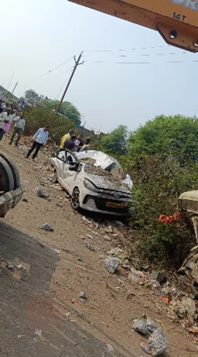 ओवरब्रिज से कार पर गिरा हाईवा: NH-45 पर हादसा, दो की मौके पर मौत