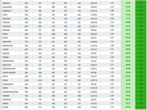 पोर्टल पर हर माह जिलों की रैंकिंग जारी की जाती है। यहीं रैंकिंग प्रदेश में इस अहम योजना की पिछड़ी स्थिति उजागर कर रही है। नवम्बर माह की रैंकिंग में खंडवा जिला प्रदेश में सबसे अव्वल रहा है। जबकि सिंगरौली दूसरे, रायसेन तीसरे, बड़वानी चौथे, सागर पांचवे स्थान पर हैं। रैंकिंग की इसी फेहरिस्त में भिंड, सतना, निवाड़ी, हरदा और मुरैना का प्रदर्शन सबसे कमजोर रहा है। ये पांचों जिलों में योजना की स्थिति सबसे खराब है।