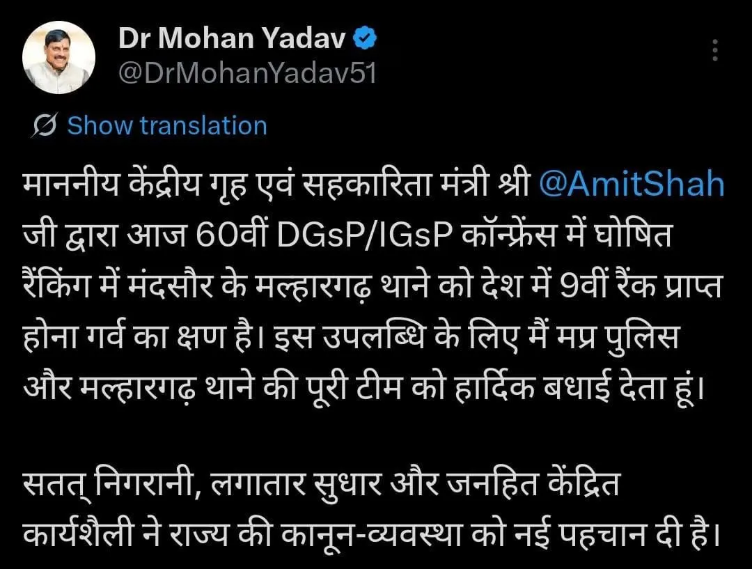 16 हजार थानों में से नौवें नंबर पर आया यह थाना मध्यप्रदेश का माणिक बताया गया था। मुख्यमंत्री डॉ मोहन यादव से लेकर डीजीपी तक हर कोई इस पर गर्व कर रहे थे, लेकिन अब तस्वीर उलट चुकी है। मल्हारगढ़ पुलिस ने पूरे महकमे का मुंह काला करा दिया है।
