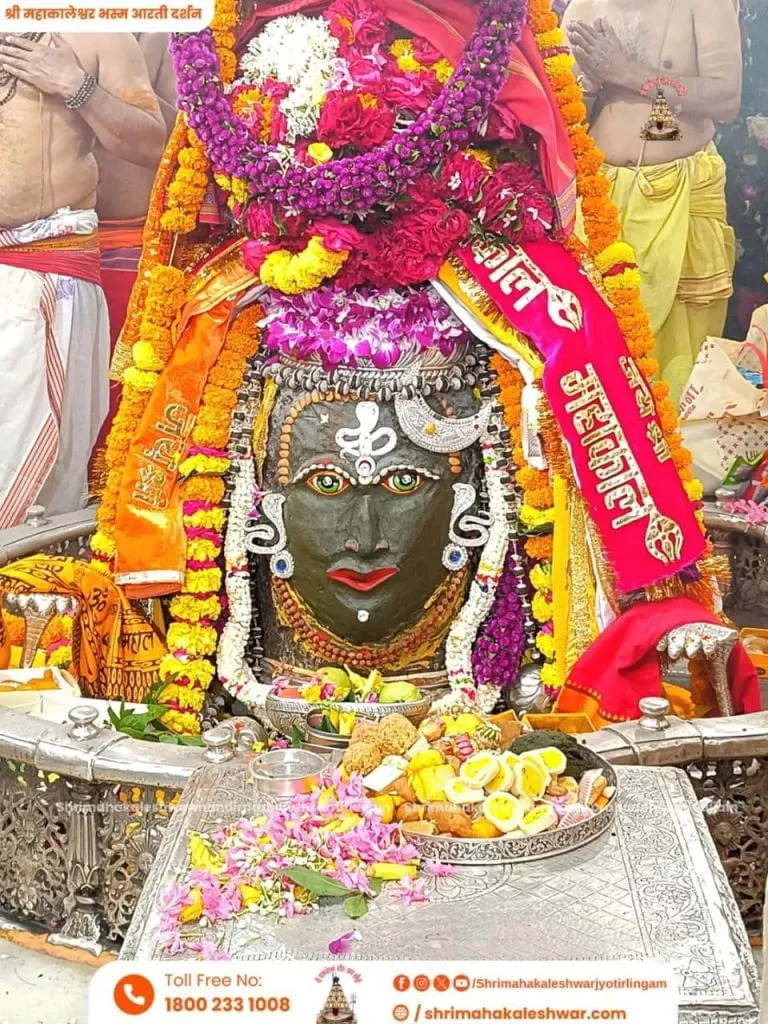 अभिषेक के बाद, भगवान महाकाल का अलौकिक श्रृंगार किया गया। उन्हें भांग, चंदन और त्रिपुंड अर्पित करके जटाधारी राजा स्वरूप में सजाया गया। इस श्रृंगार में भगवान को शेषनाग का रजत मुकुट और चांदी की मुंडमाल भी धारण कराई गई।