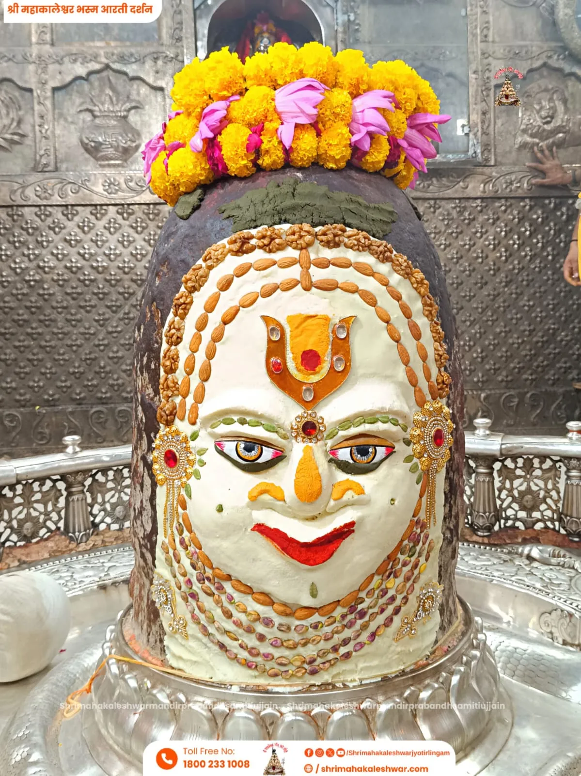 गुरुवार के पावन अवसर पर, भगवान महाकाल को एक विशेष देवी स्वरूप में सजाया गया। इसमें बाबा महाकाल का श्रृंगार भांग, चंदन, ड्रायफ्रूट और बहुमूल्य आभूषण से किया गया। श्रृंगार पूरा होने के बाद, ज्योतिर्लिंग को वस्त्र से ढांककर भस्मी रमाई गई।