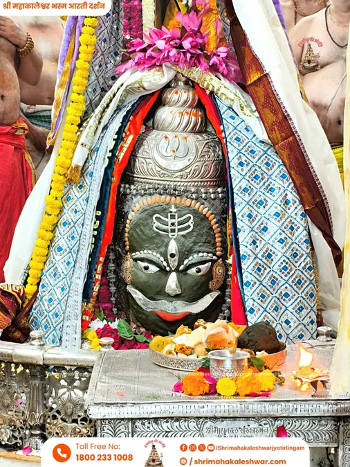 इसके अलावा, उन्हें चांदी की मुण्डमाला और रुद्राक्ष पहनाई गई। उज्जैन महाकालेश्वर मंदिर अंत में, फल और स्वादिष्ट मिष्ठान का भोग भगवान को लगाया गया।