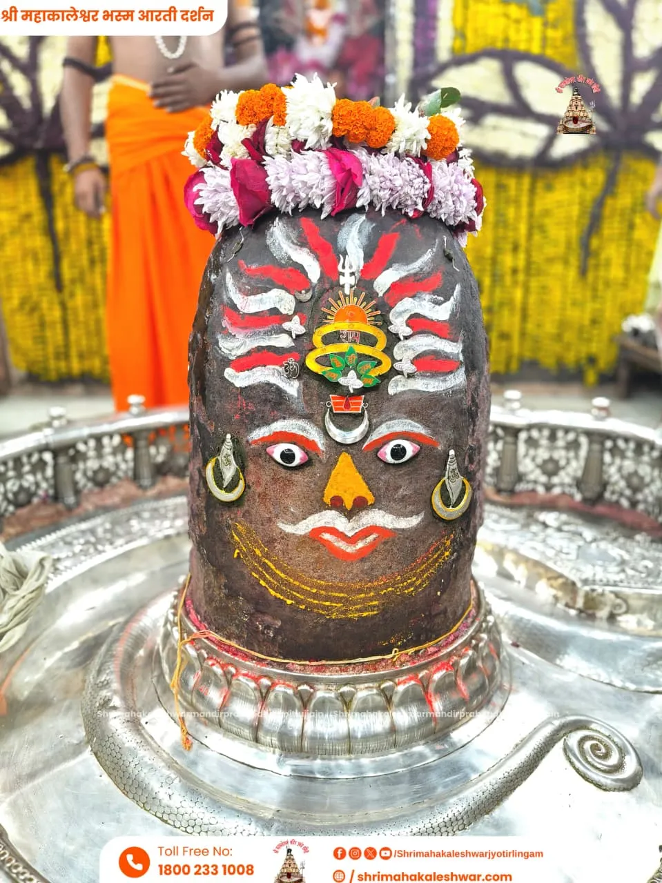 भस्म आरती के लिए भगवान (बाबा महाकालभस्म आरती) का विशेष श्रृंगार किया गया। चंदन, भांग और सूखे मेवों (ड्रायफ्रूट्स) से उनका मनमोहक रूप बनाया गया। बाबा महाकाल ने शेषनाग का अद्भुत रजत मुकुट पहना था।