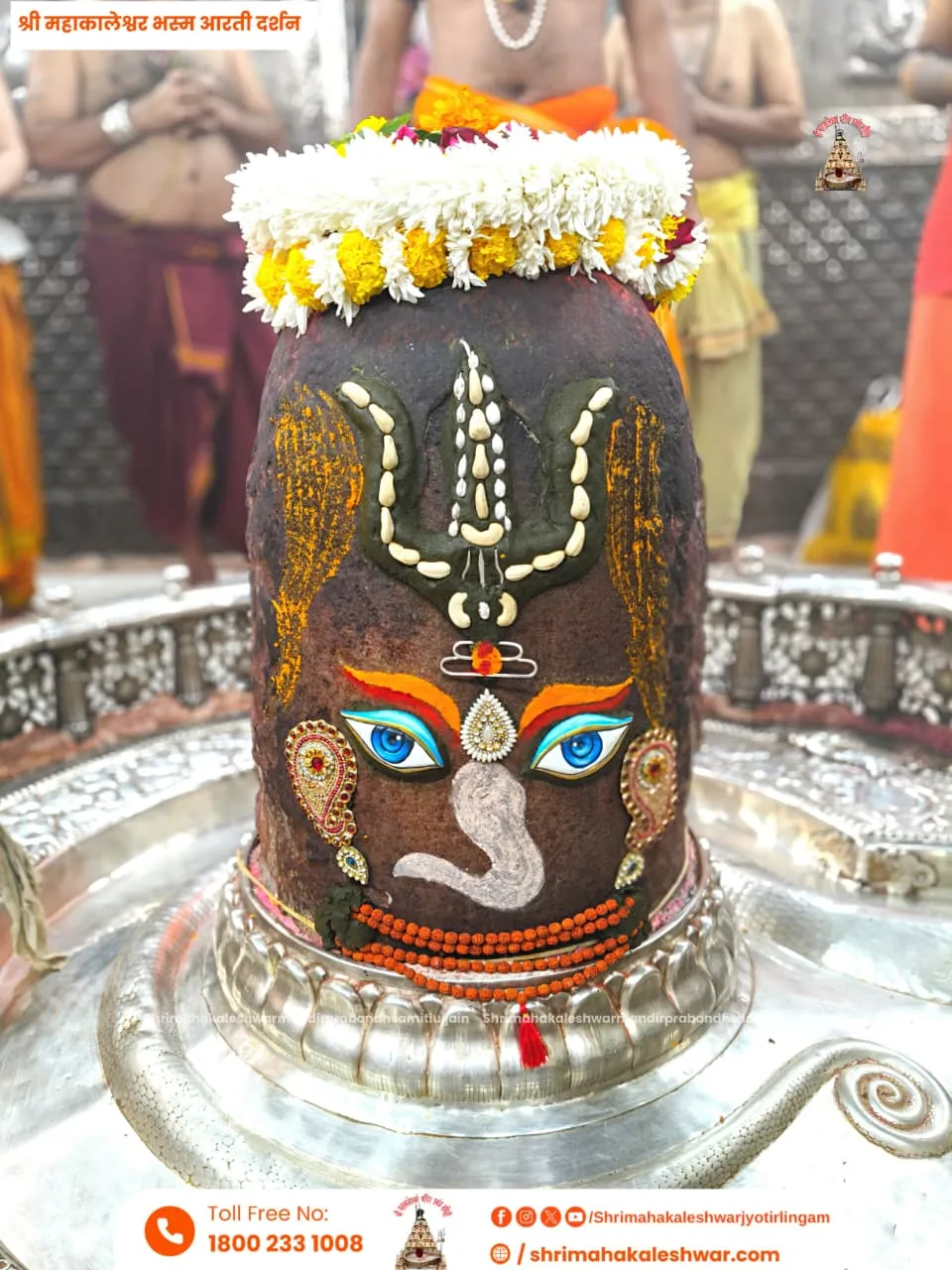 इसके अलावा, उन्हें चांदी की मुण्डमाला और रुद्राक्ष पहनाई गई। उज्जैन महाकालेश्वर मंदिर अंत में, फल और स्वादिष्ट मिष्ठान का भोग भगवान को लगाया गया।
