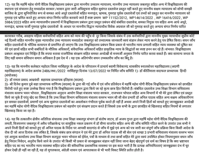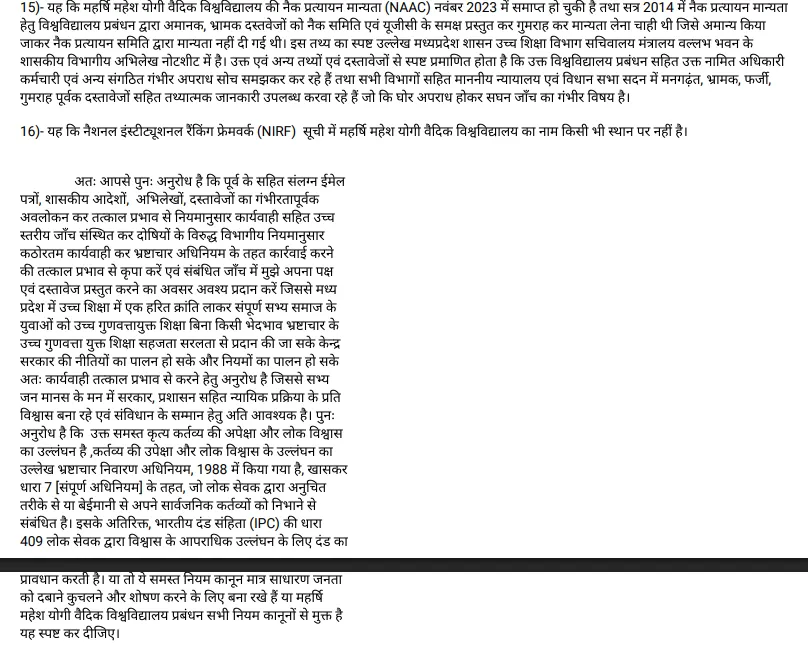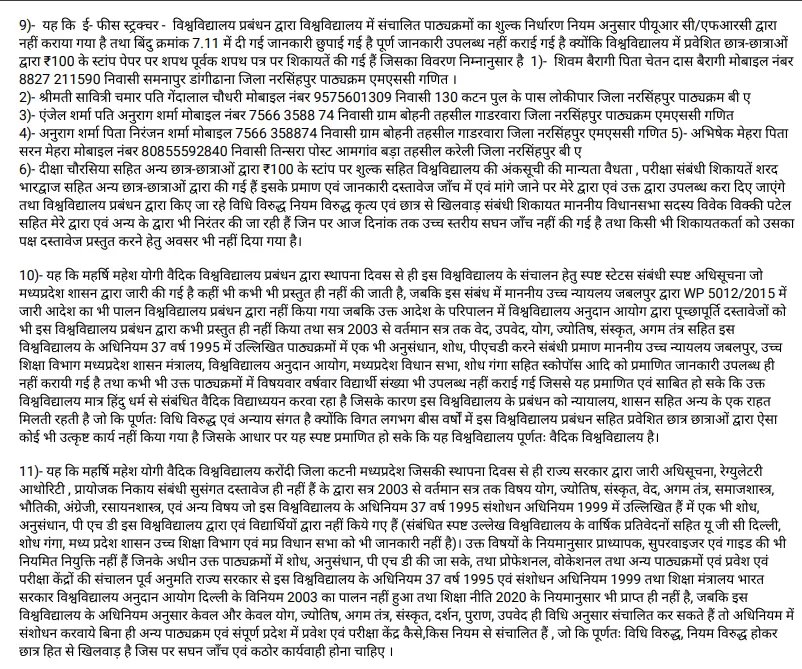 महर्षि महेश योगी विश्वविद्यालय की मनमानी के आगे सरकारी पत्र भी बेमानी