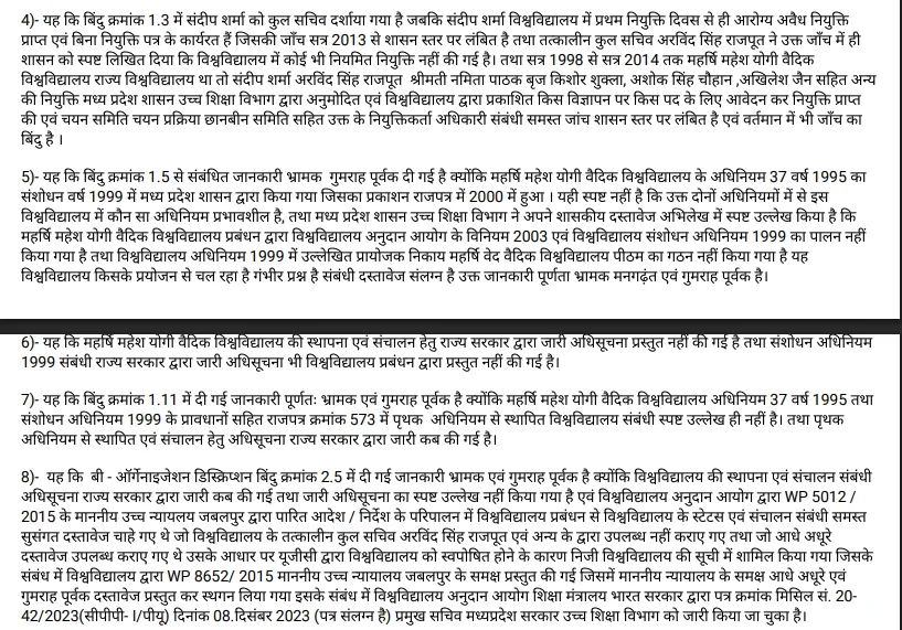 विवि ने आयोग को जो जानकारी भेजी, उसमें अपनी शिक्षण संस्था का नाम महर्षि वेद विज्ञान विश्व विद्यापीठम बताया है। वहीं, उच्च शिक्षा विभाग के रिकॉर्ड के मुताबिक, इस “पीठम” का गठन अब तक पूर्ण नहीं माना गया है।