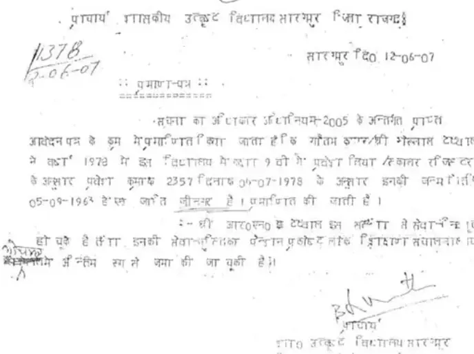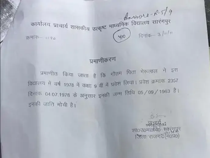 स्कूल रिकॉर्ड में जाति जीनगर दर्ज है, जबकि नए प्रमाण पत्र में मोची बताया गया है।