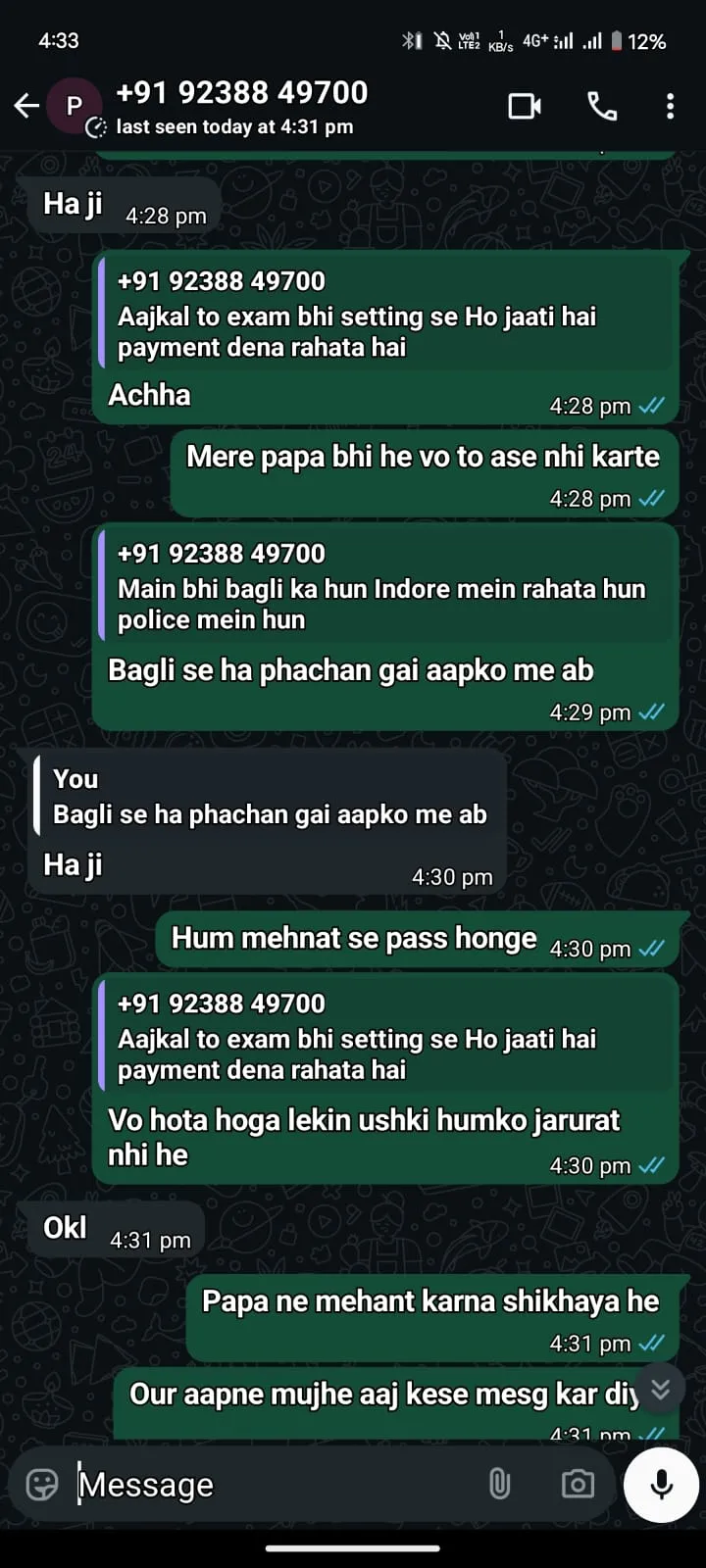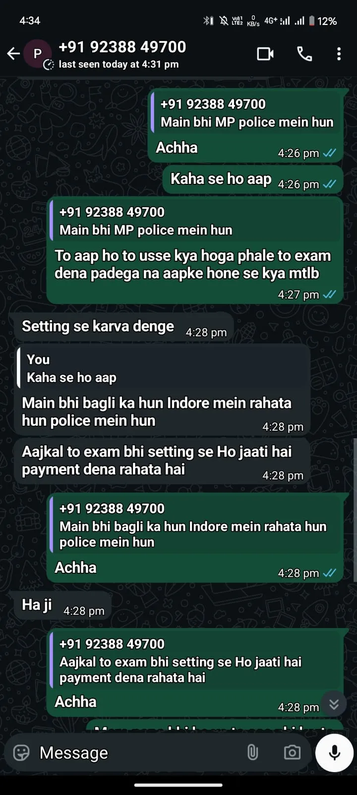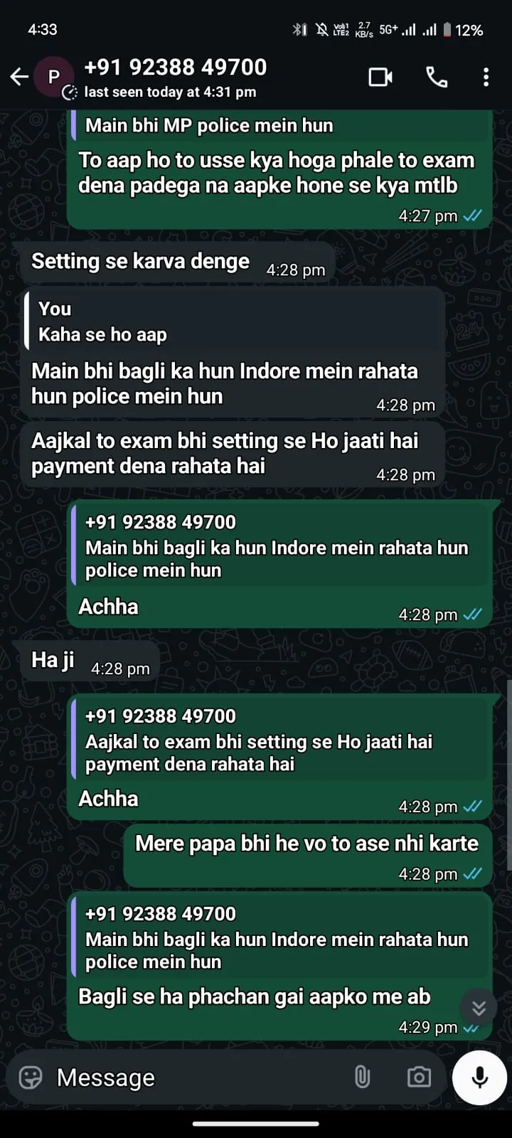 युवती- हां मेरी बहन के पास था नंबर, वो आपने परीक्षा के लिए मैसेज किया था, कितना पेमेंट लगेगा?