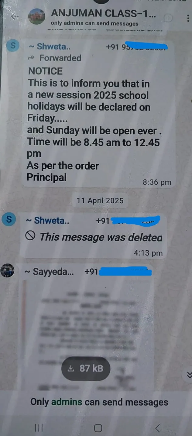 बार-बार की अनुपस्थिति के कारण शैक्षणिक गतिविधियां प्रभावित हो रही थीं। इसलिए संस्था ने शैक्षणिक सत्र 2025-26 से साप्ताहिक अवकाश को रविवार से बदलकर शुक्रवार करने का निर्णय लिया।