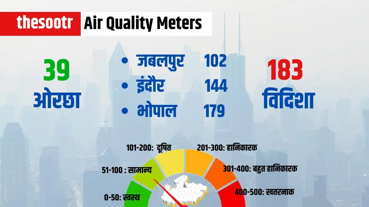मध्य प्रदेश की हवा में इन दिनों बदलाव देखने को मिल रहा है। मध्य प्रदेश के शहर ओरछा की हवा प्रदेश के अच्छी हवा वाले शहरों में शामिल हो गई है। वहीं विदिशा शहर की हवा में काफी गिरावट देखने को मिली और यहां का एक्यूआई 183 दर्ज किया गया।