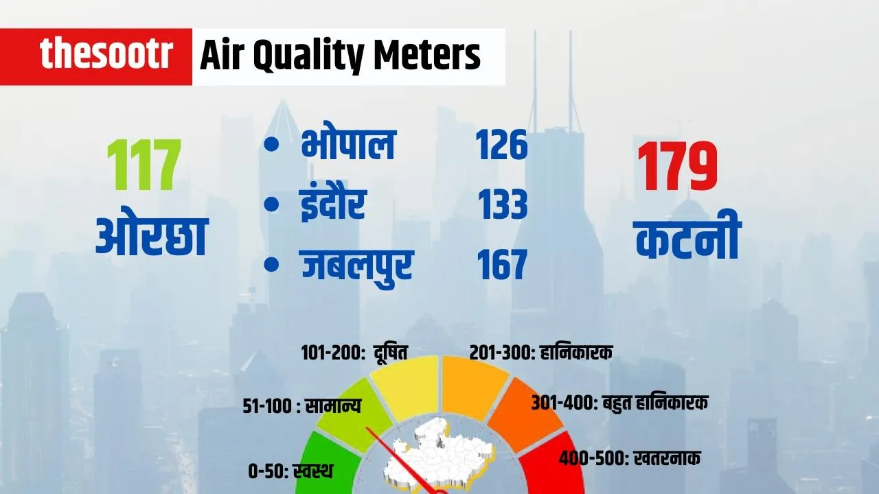 मध्य प्रदेश की हवा में इन दिनों बदलाव देखने को मिल रहा है। मध्य प्रदेश के शहर ओरछा की हवा प्रदेश के अच्छी हवा वाले शहरों में शामिल हो गई है। वहीं कटनी शहर की हवा में काफी गिरावट देखने को मिली और यहां का एक्यूआई 179 दर्ज किया गया।