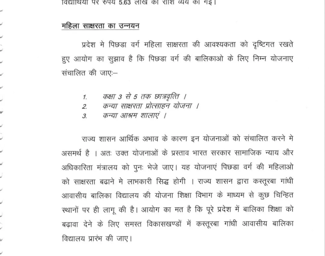 स्टडी रिपोर्ट में यह भी लिखा है कि ओबीसी महिला साक्षरता के लिए काम करने की जरूरत है। इसके लिए छात्रवृत्ति, कन्या साक्षरता प्रोत्साहन योजना, कन्या आश्रम शालाएं जरूरी हैं। लेकिन, धन की कमी के कारण सरकार ये योजनाएं संचालित करने में असमर्थ हो रही हैं।